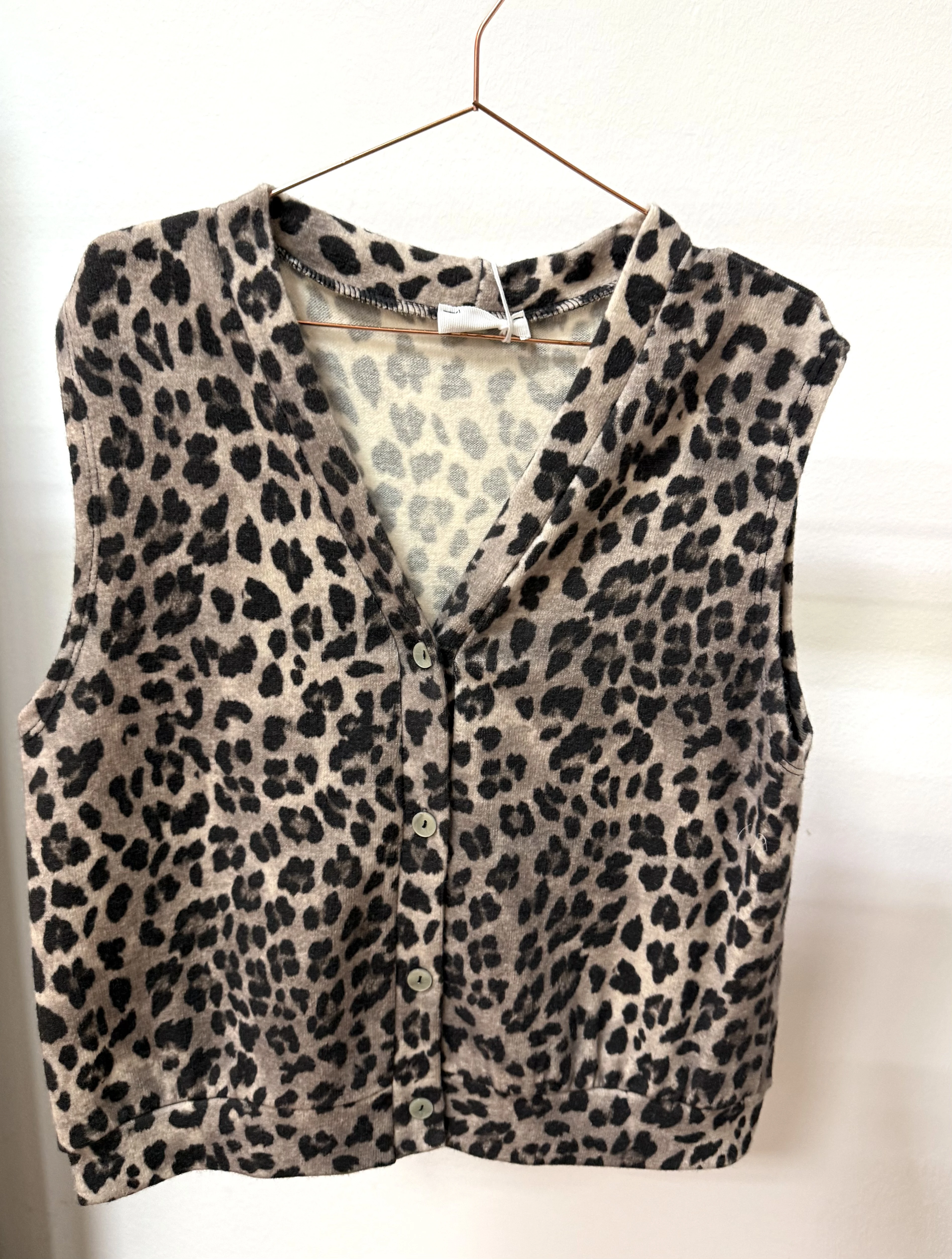 BESCHREIBUNG• leichte oversized Weste Knopfleiste• Farbe: Taupe/Schwarz Lei• Größe: One size (Gr. ca. 34-42)• Qualität: 80% Viskose, 20% Acryl