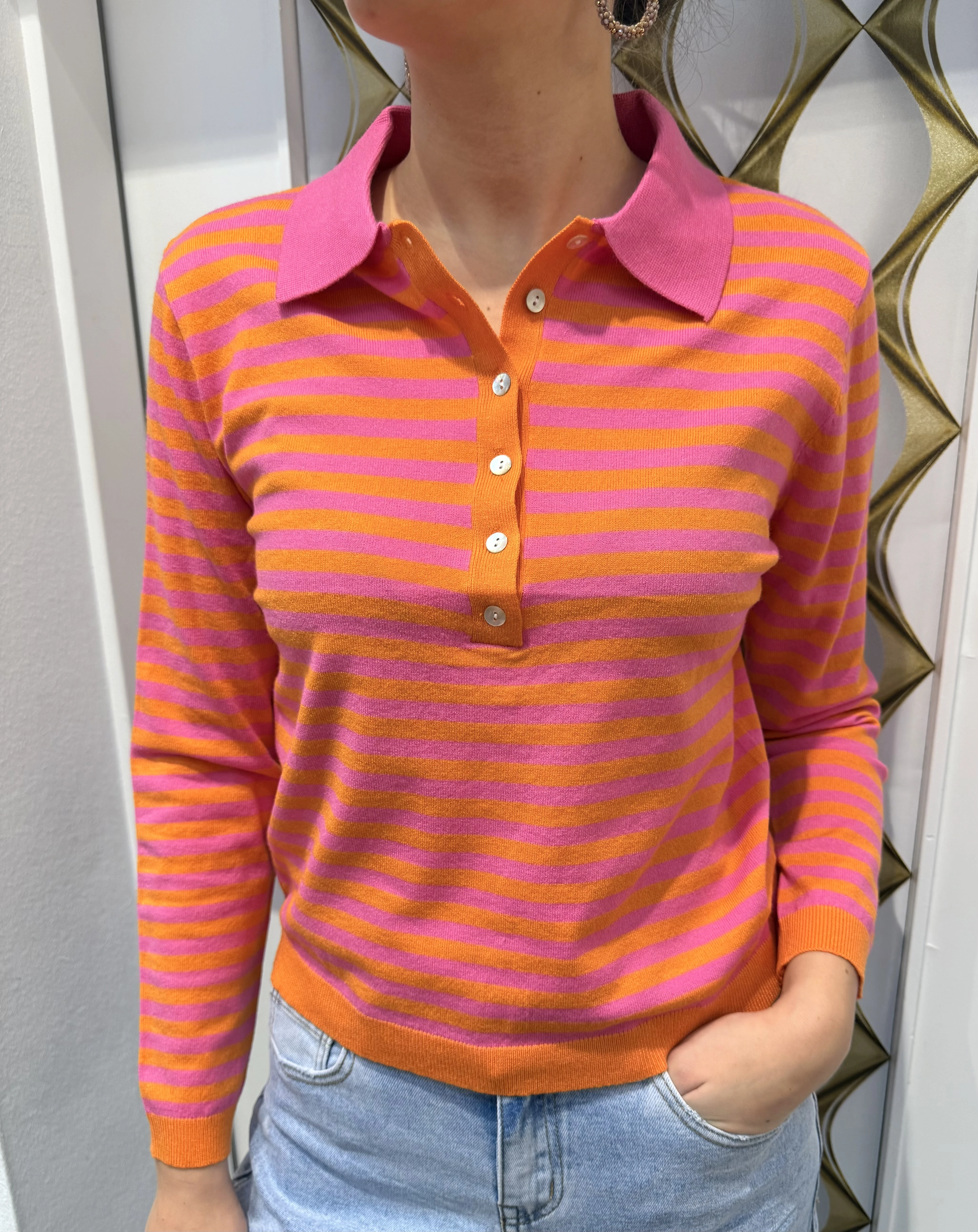 BESCHREIBUNG• Weicher Pullover mit einem Polokragen und kleiner Knopfleiste• Langer Ärmel• Größe: One Size (Gr.34-38)• Material: 45% Viskose, 30% Polyamid, 25% Polyester• Pflegehinweis: 30 Grad Schonwaschgang, kein Weichspüler