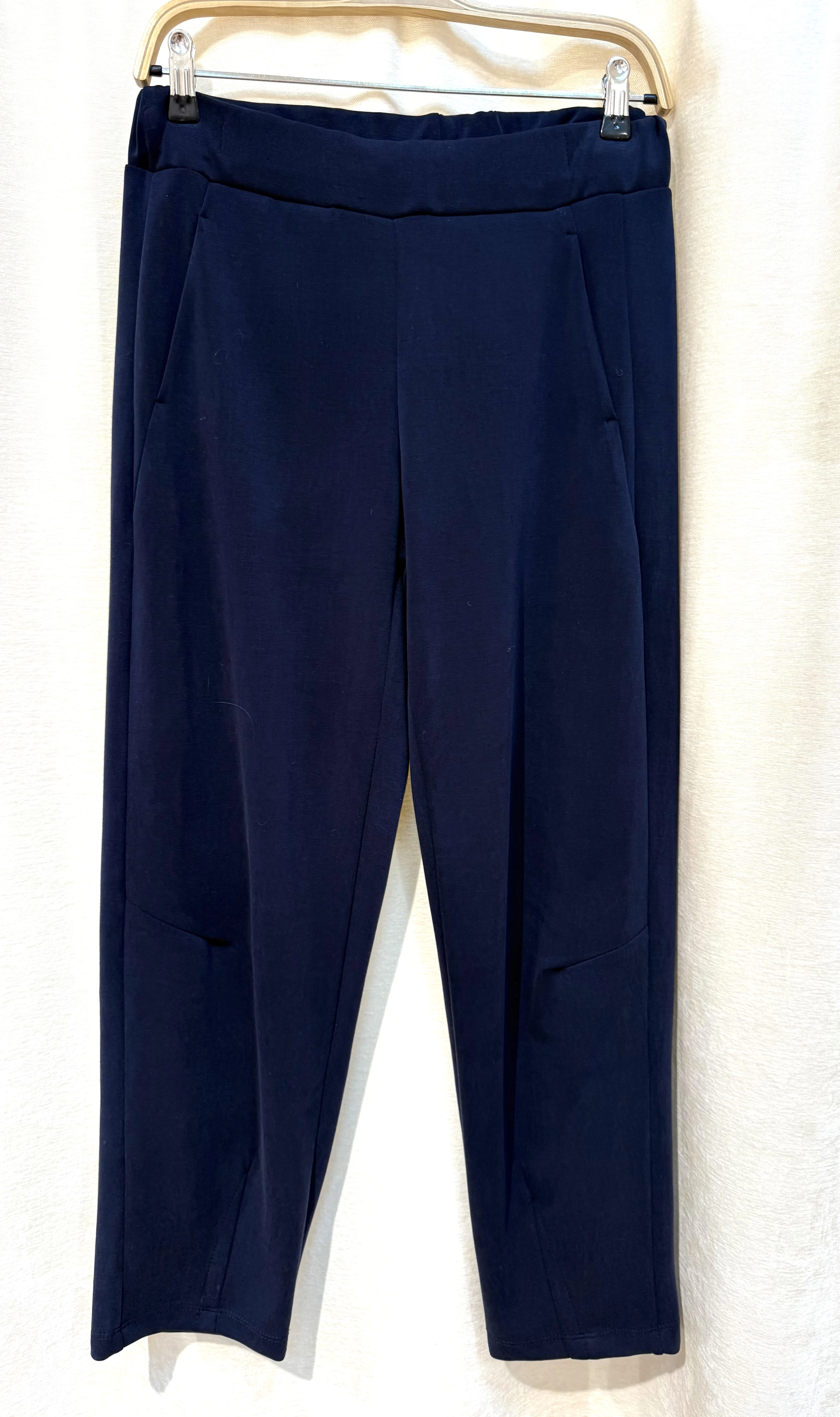BESCHREIBUNG• Lässige Hose mit Gummizug am Bündchen• Einstecktaschen, verkürzt• Größe: Einheitsgröße (Gr.34-42)• Qualität: 49% Polyester, 44% Viskose, 7% Elasthan• Pflegehinweis: 30 Grad waschbar, kein Weichspüler