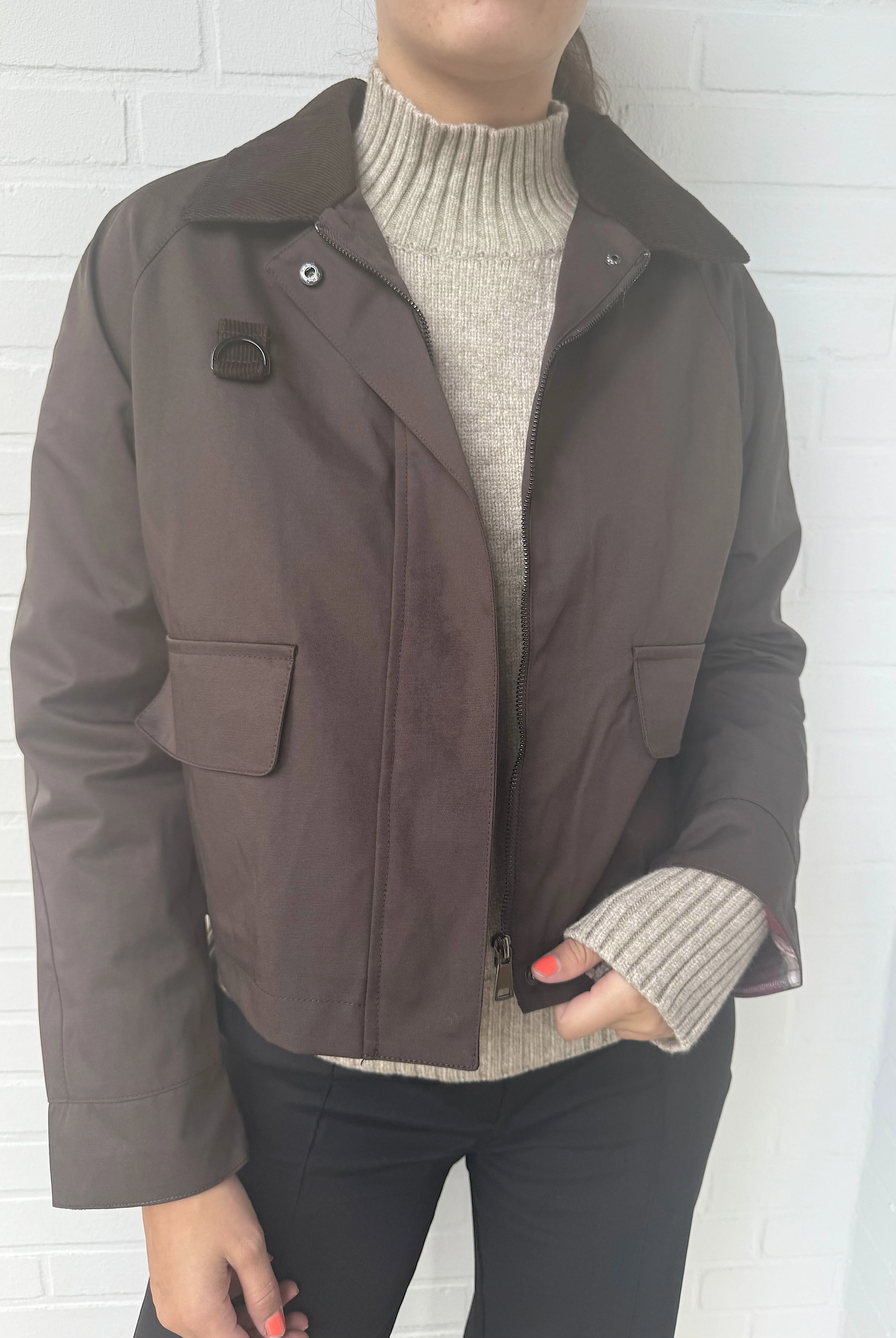 BESCHREiiBUING:• Jackenblouson mit einem Cordkragen• lange Ärmel, kariertes Innenfutter, Taschen• Farbe: Braun• Qualität: 53% Baumwolle, 47%Polyester