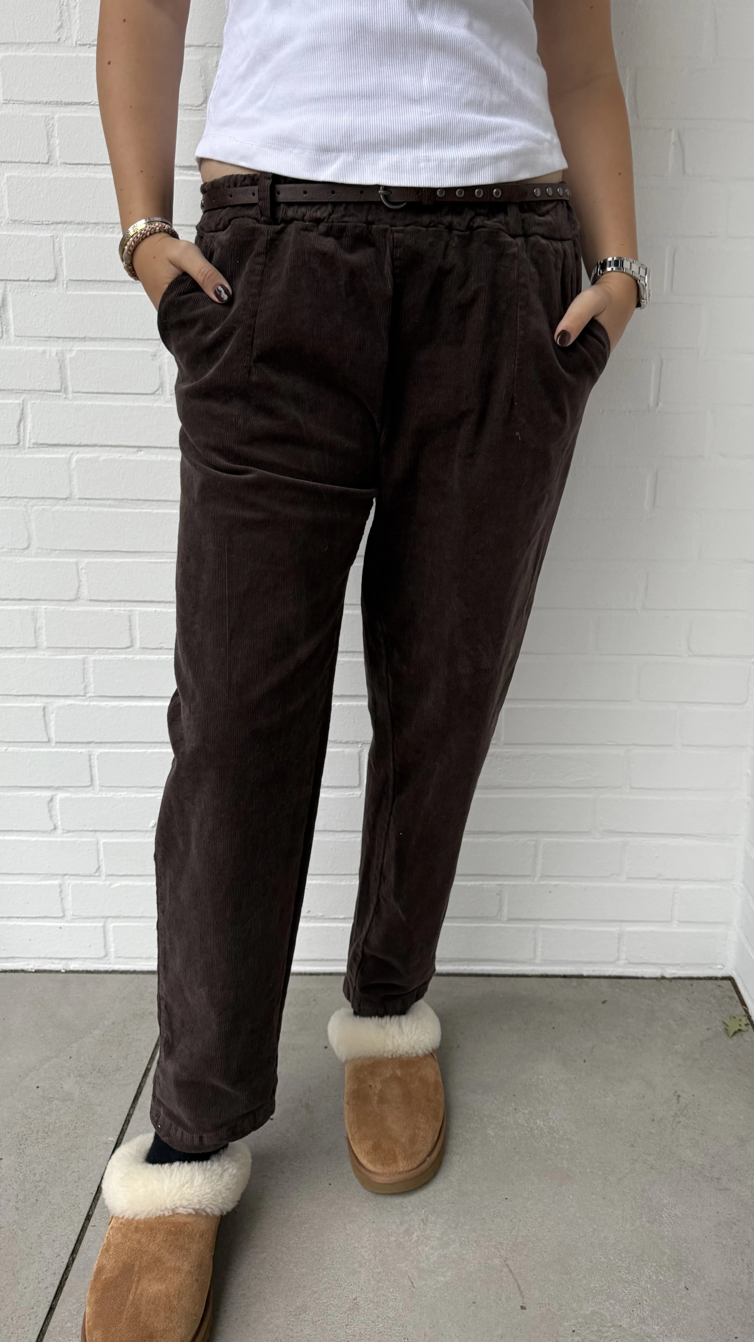 BESCHREIBUNG• lässige Baby-Cordhose mit Gürtel• Einstecktaschen• locker geschnitten• Qualität: 95% Cotton, 5% Elasthan• Farbe: Braun