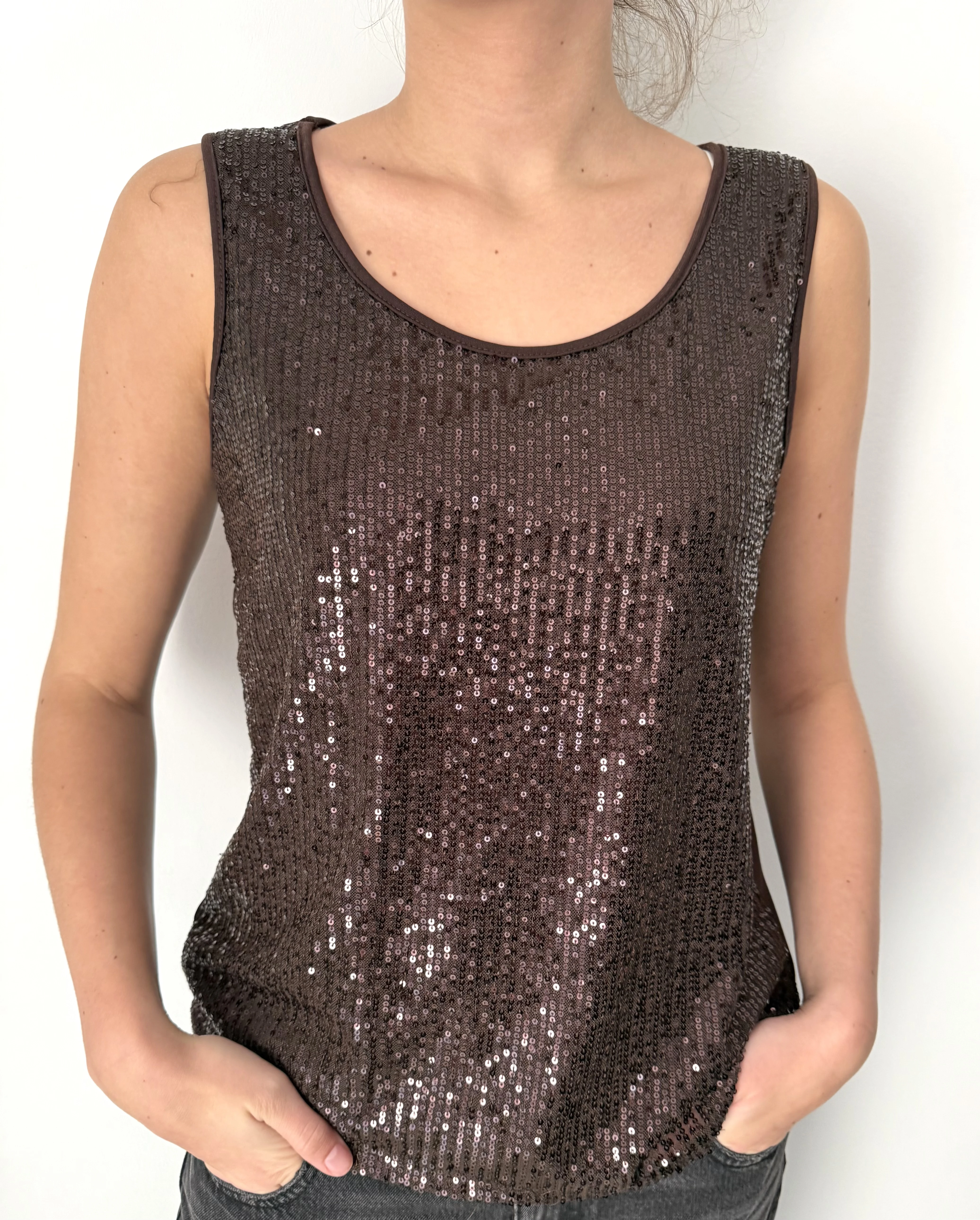 • Festliches Top mit Pailetten auf der Vorderseite • Tanktop, mittlere Länge • Größe: One Size (Gr.34-40) • Material: 95% Polyester, 5% Elasthan • Pflegehinweis: 30 Grad Wäsche, ohne Weichspüler