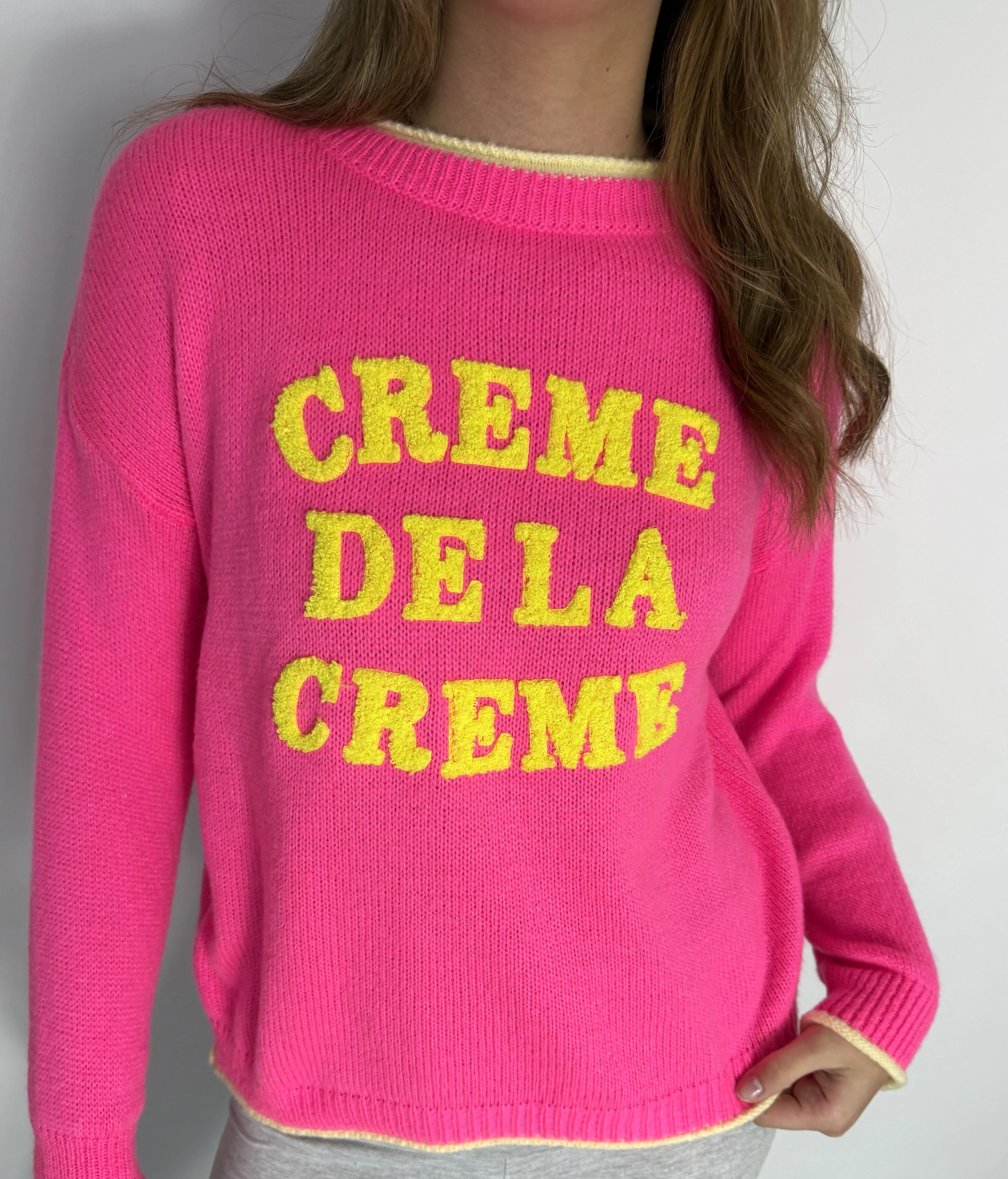 BESCHREIBUNG• Pullover mit einem Rund-Ausschnitt• Schriftzug aufgestrickt• Größe: One Size (Gr.34-42)• Neondetails • Material: 56% Acryl, 28% Polyamid, 8% Wolle, 8% Viskose• Pflegehinweis: 30 Grad Schonwaschgang, kein Weichspüler