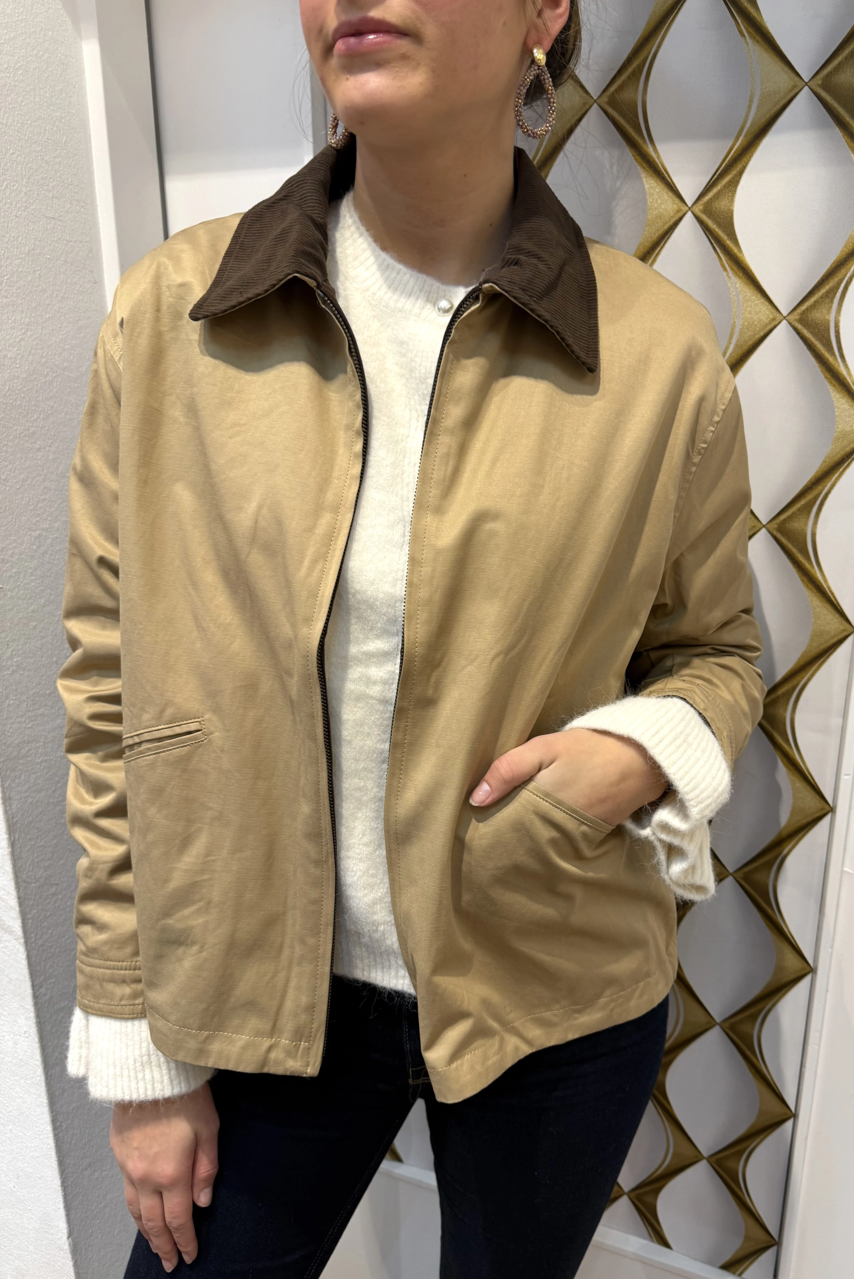 BESCHREiiBUING:• Jacke mit einem Cordkragen• Wendbar, lange Ärmel, Taschen• Farbe: Camel, Kragen Braun• Qualität: 56% Baumwolle, 27% Polyamid, 17%Polyester• Pflegehinweis: Schonend bei 30 Grad waschen, kein Weichspüler