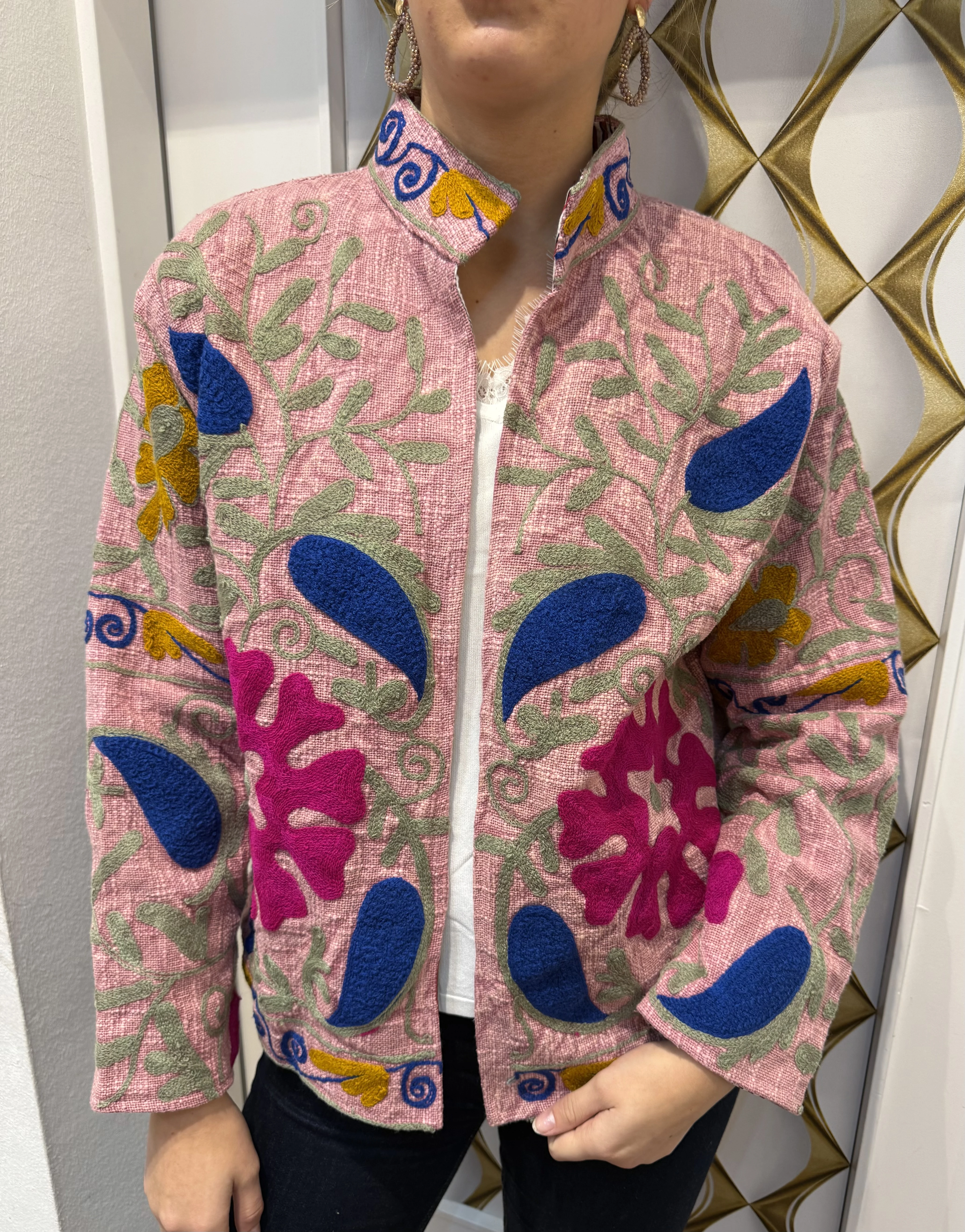 BESCHREiiBUING:• Blazer mit aufwendiger Stickerei• Jeder Blazer ist ein unikat• Größe: One Size (ca. 34-40)• Qualität: 100% Baumwolle• Pflegehinweis: Handwäsche empfohlen, kein Weichspüler